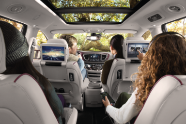 2017款全新进口克莱斯勒大捷龙配备了同级独有的10.1寸二排双屏独立播放娱乐系统,可播放1080P蓝光高清DVD,并支持HDMI数码接口,搭配Alpine®13扬声器音响系统,营造出豪华剧院式驾享体验,更能与前排中控系统互不干扰,独立运作。在全家欢乐出游时,无论是一个新颖游戏亦或是一部《小猪佩奇》,后排独立娱乐系统均可以让吵闹的熊孩子立刻安静下来。