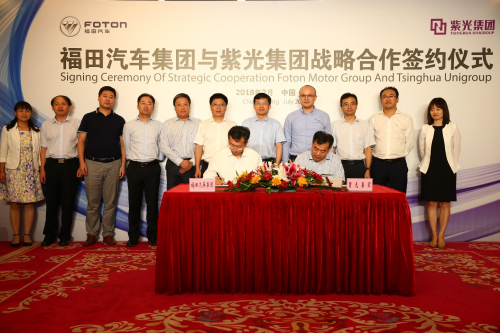 7月31日,福田汽车集团党委书记、总经理巩月琼与紫光集团联席总裁王慧轩共同签署了福田汽车集团与紫光集团全面战略合作框架协议。福田汽车集团副总经理、商用汽车集团总裁宋术山,福田汽车集团副总经理、工程研究总院院长武锡斌,紫光集团副总裁、紫光云数有限公司总裁吴健,紫光集团副总裁、紫光智能汽车科技公司总裁何华杰等领导共同出席签约仪式并见证双方的战略签约。
