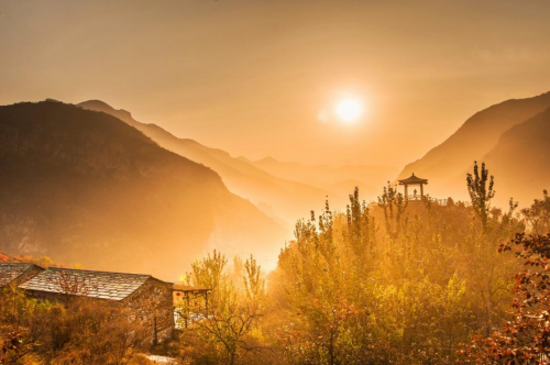 6:00-8:30 坡峰岭景区里晨起赏红叶拍摄日出,登高赏百年黄栌王,鹰嘴岩等精华景点
