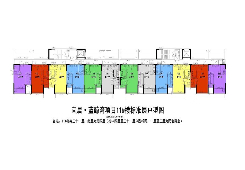 宜居•蓝鲸湾小区位于芜湖经开区泰山路以南、与奇瑞BoBo城隔路相望,规划建设总用地面积约9.7万㎡(145亩)、总建筑面积约28.85万㎡;其中:地上总面积约21.5万㎡,由14幢18层小高层、8幢28-33层高层住宅建筑及其裙房、配套公建用房组成,建筑功能为5012套公租房、底商及社区医疗、儿童活动中心、文体中心、物业用房等配套公建;地下总建筑面积约7.35万㎡,主要功能为2200个机动车位、10080个非机动停车位,及人防、消控、电房、泵房、电梯井等配套功能用房。小区已于2013年10月交付使用。