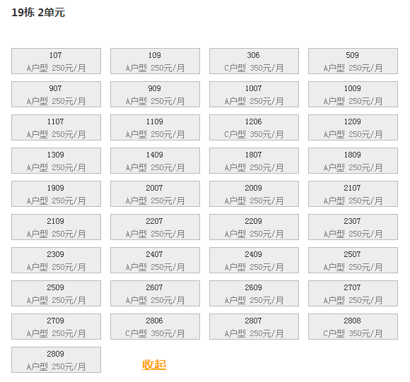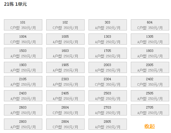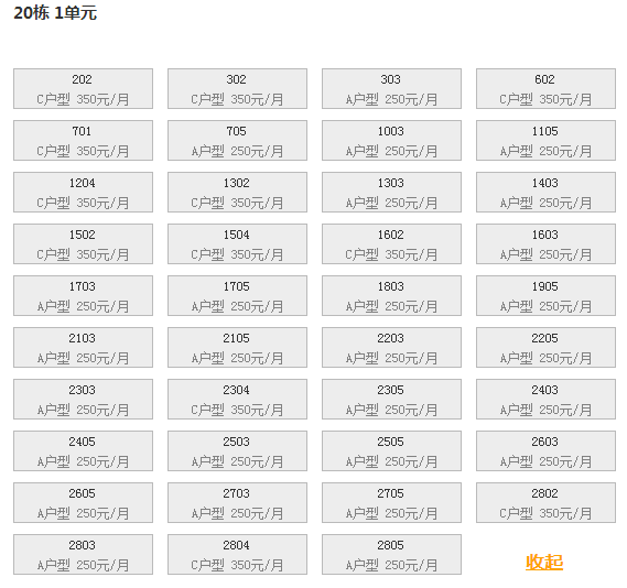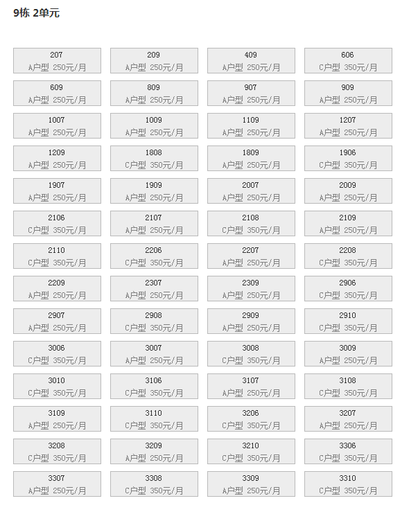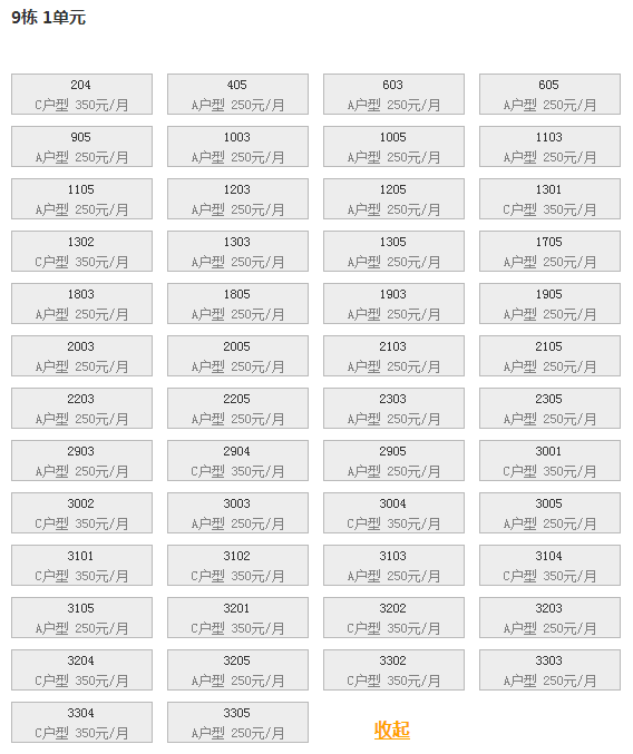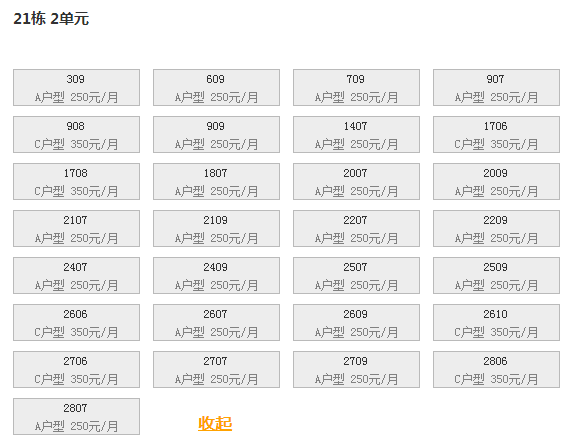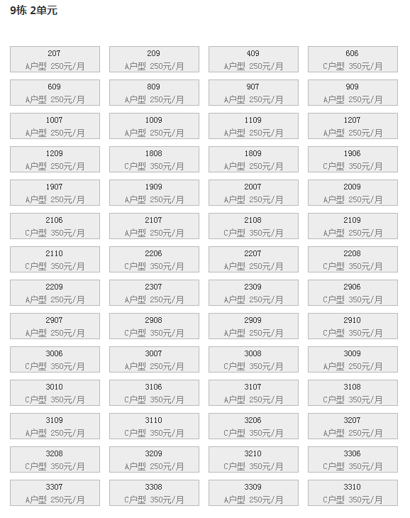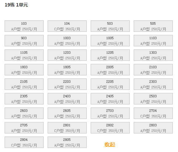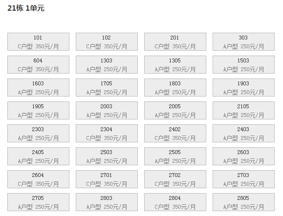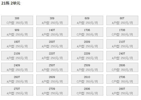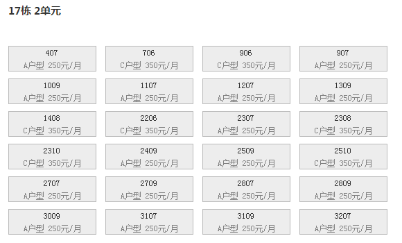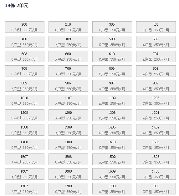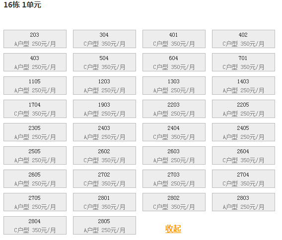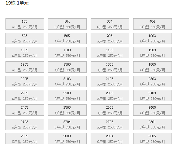 最新可出租房号,户型及价格: