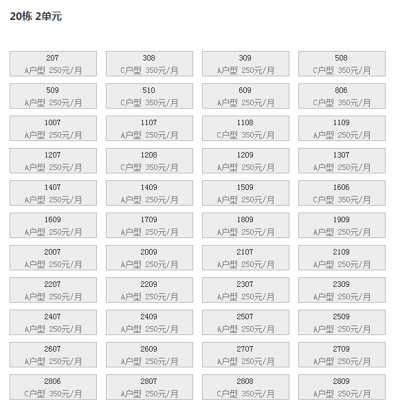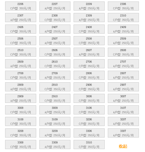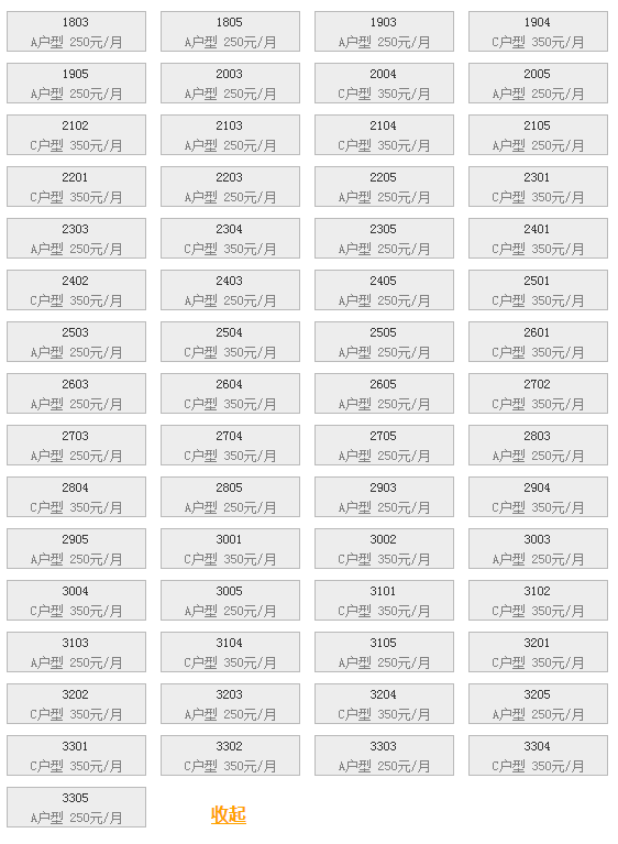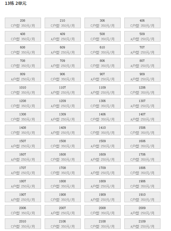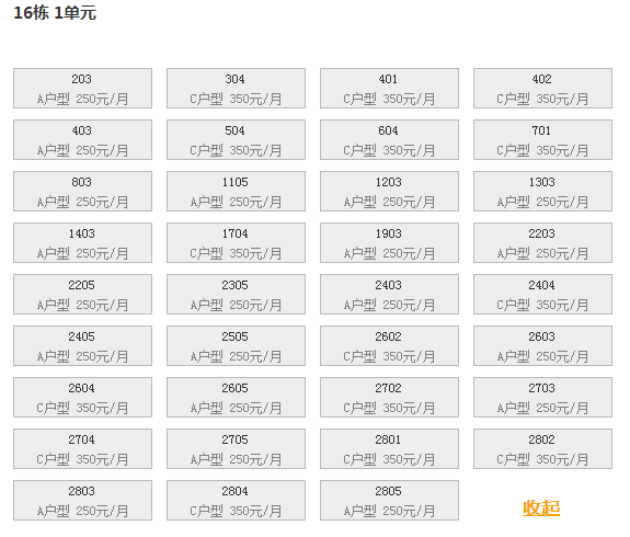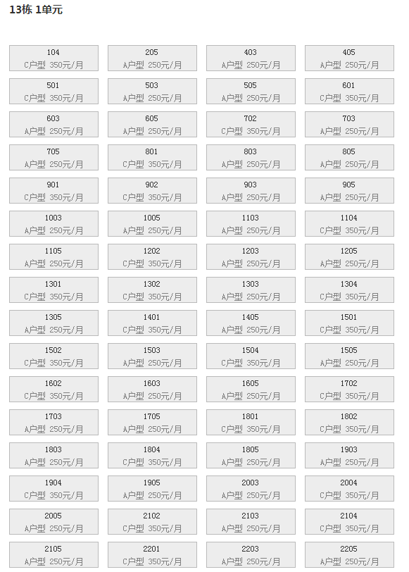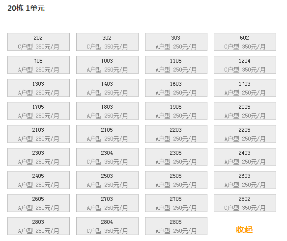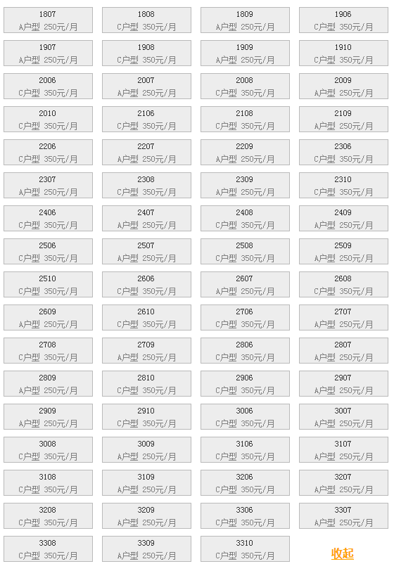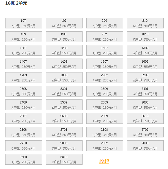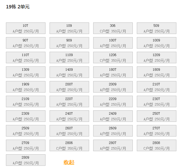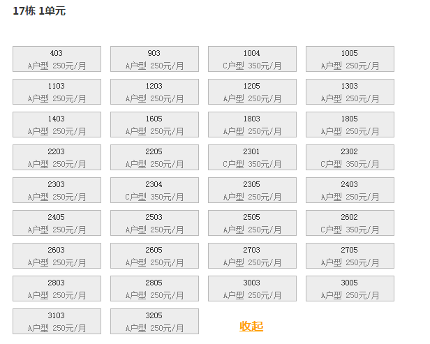 最新可出租房号,户型及价格: