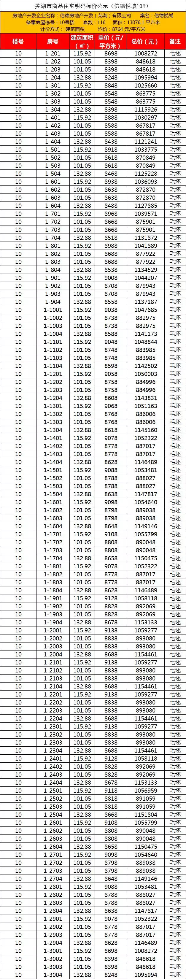 芜湖市鸠江区信德悦城316套一房一价公布 A小来源:We芜湖2018-10-30 20:28:25 近日,芜湖市发改委官网公示了鸠江区信德悦城9#和10#楼的明码价格公示,共计316套房源。 根据公示显示:9#楼共计200套房源,均价为8737元/㎡,10#楼共计116套房源,均价为8765元/㎡。 根据公示显示:9#楼共计200套房源,均价为8737元/㎡,10#楼共计116套房源,8765元/㎡。 ℃ QQ空间新浪微博腾讯微博豆瓣 芜湖房价会跌吗?各区楼盘平均价格多少? 高层+洋房+别墅!芜湖镜湖某纯新盘规划出炉!预计下月首开! 相关阅读 芜湖镜湖区、弋江区、鸠江区、三山区安置房办证详细步芜湖市2018年重大交通建设工程项目最新进展情况鸠江区颁发全市区(县)级首张外资登记营业执照最新芜湖市各类幼儿园最新学费价格芜湖市区及各县有哪些公积金服务网点?上班工作时间是什 推荐图片 2021芜湖住房公积金缴存基数和比例调整!你的工资有变化吗? 芜湖公交卡将停止发行!不再充值!明年可用支付宝、微信 关于芜湖市三山区燃气用户户号变更的通知 芜湖市文化路要进行拓宽改建啦 最新评论