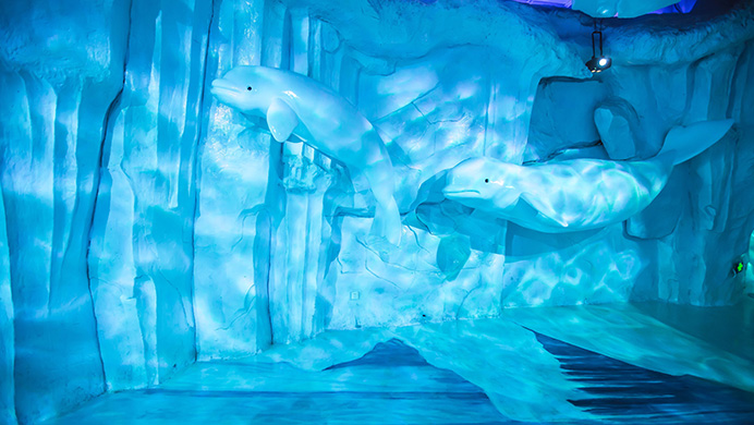 芜湖新华联大白鲸海洋公园采用了第五代海洋公园的全新理念打造,以故事线为主轴,以互动参与为主导,以高科技多媒体为手段,将淡水王国、海底世界、南北极大陆冰海的原生态环境与海洋极地生灵的生活状态进行全方位的展现,让人们沉浸在从未见过的海洋世界,体会人与自然、人与海洋极地生灵和谐共生的美妙感受。