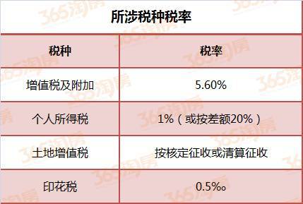 ⑥增值税及附加税:5.6%(超过2年的普通住房对外销售,免征)(卖方承担)