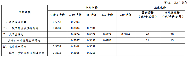 电网销售电价表
