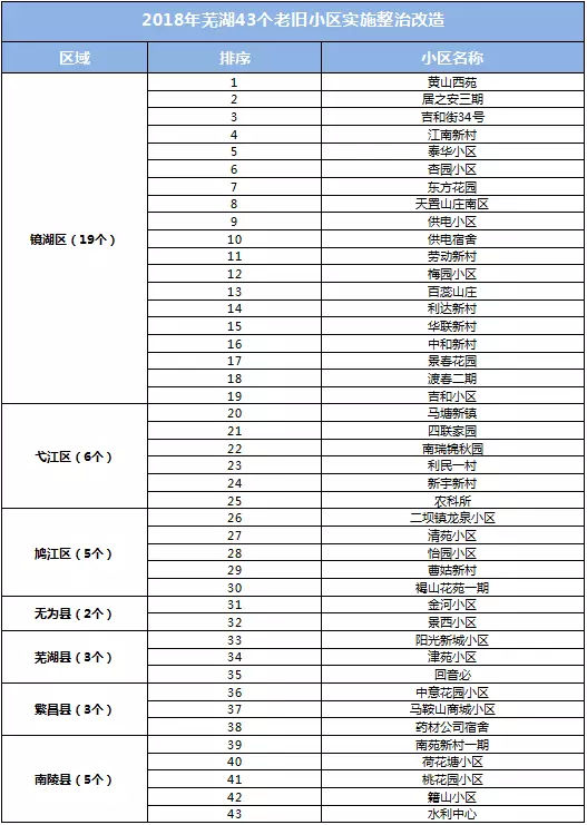芜湖县整治改造3个,整治改造总建筑面积17.1万平方米,涉及改造户数1829户,总投资563.3万元;