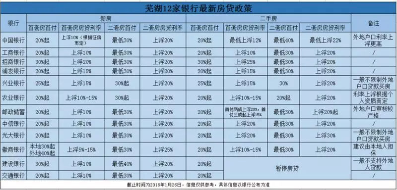 2018年最新芜湖各大银行最新房贷利率表已出!