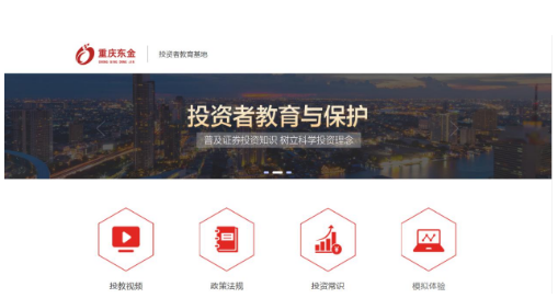 经过数月研发准备工作,目前重庆东金投资者教育基地上线了四大功能模块,分别是投教视频、政策法规、投资常识、模拟体验,在视频上,覆盖了波浪理论、K线形态等技术分析,也包括财务分析、宏观分析等基本面研究;在政策法规上,普及股市相关法律法规,不仅是为了规避风险,更是识别优秀公司的重要因素,根据重庆东金统计,大多数优秀的公司都会在合法合规上有突出的建设;在投资常识上,重点强调了股市当中的风险因素,避免初入股市的投资者认为股票市场是取款机,随随便便就能不劳而获;在模拟体验上,通过风险测评,让初学者了解自身的风险偏好,选择适合自己的投资方法。