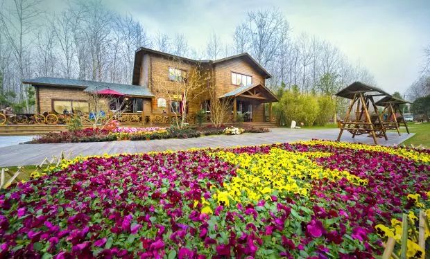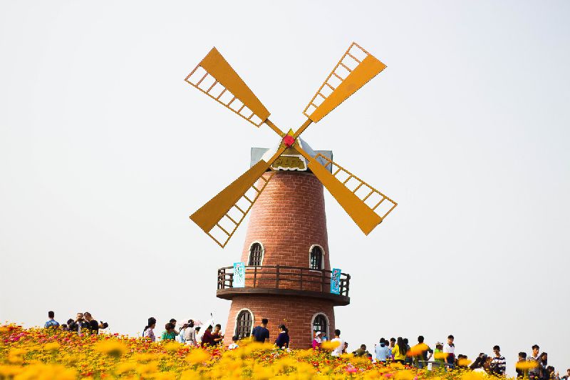 这儿有着近4万平方米的连片花海,“一望无际”花香扑鼻,站在花海中和大风车一起享受湖光田园。