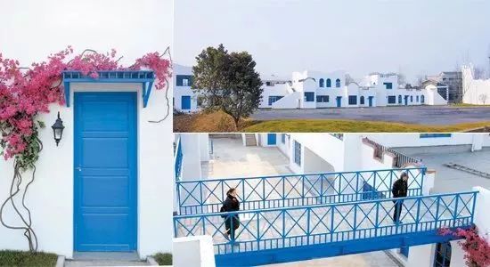 整个小镇以白色和蓝色为基调,以圣托里尼建筑风貌为特色,随便拍拍都是地中海式小清新。