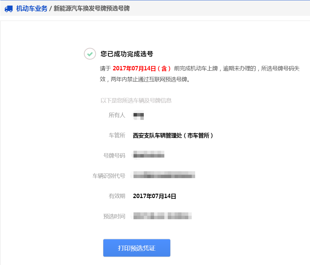 对于已经完成选号的用户,在预选号牌有效期内,若用户未被列入选号黑名单,用户每次进入预选号牌业务,都将直接跳转到第二阶段步骤3【完成号牌预选】。