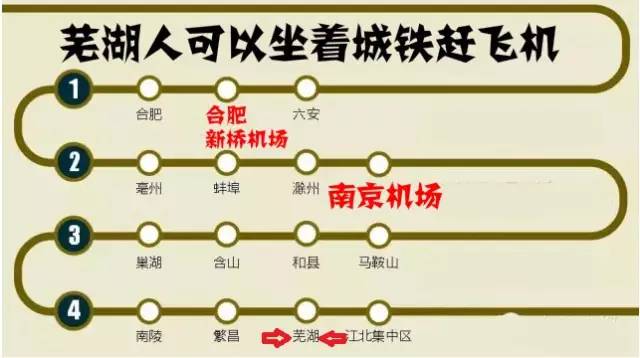 线路:芜湖-合肥新桥国际机场(搭乘南陵-繁昌-芜湖-江北集中区城际铁路,在南陵站换乘合福高铁即可)