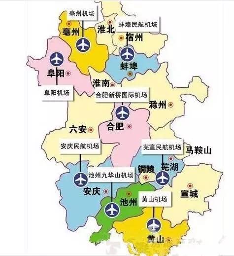 新建芜湖宣城、蚌埠、亳州、宿州、滁州民航机场,实施阜阳、黄山、九华山、安庆机场改扩建,开展新建金寨民航机场,迁建安庆、黄山机场项目前期工作。