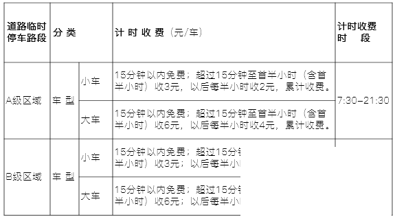 市区道路临时停车泊位路段(A级区域)市区道路临时停车泊位路段(B级区域)