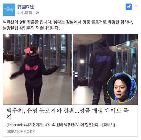 韩国演员朴有天13日被爆9月迎娶小3岁圈外女友,女方是南洋乳业创立者外孙女黄河娜(音译),怎料,经纪公司才证实婚讯,南洋乳业公关却表示不清楚,黄河娜也在IG发文质疑“原来我有个从1年前就交往的男友喔?“随后将IG改成非公开模式。约莫北京时间下午2点多,黄河娜再度发文“不要让我家人受伤“。