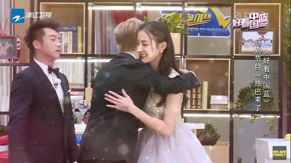 ▲鹿晗被众成员打断2次,第3次才轻轻抱上迪丽热巴。