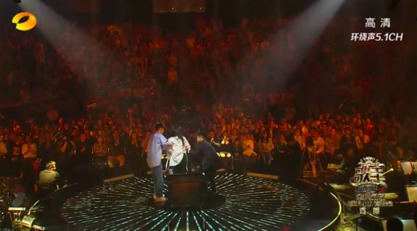 张碧晨坐在一张黑色沙发上登台,唱出了齐秦的《袖手旁观》,因为摔伤,右腿从头到尾都伸长无法弯曲,敬业的她唱完歌后,让全场来宾感动到全站起来鼓励,她则一拐一拐地跳下舞台。