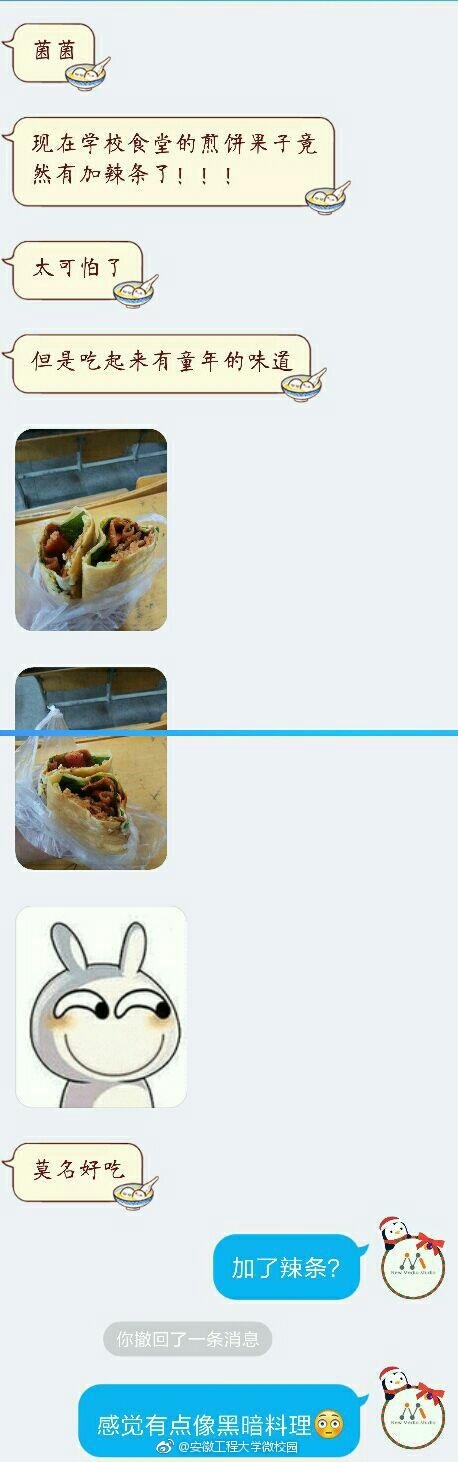 安工程又现“黑暗料理” 煎饼果子里加辣条 A小来源:芜湖网2017-05-23 22:18:34 近日,一位煎饼果子爱好者投稿,发现学校食堂里煎饼果子夹菜变得和以前有点不一样,因为现在的煎饼果子竟然可以加辣条了!之后经过菌菌的“暗访”发现,确有其事,专门品尝后觉得,还真别有一番风味 ps:图片为一、三食堂 ℃ QQ空间新浪微博腾讯微博豆瓣 外国友人迷途高速 芜湖交警来帮助 芜湖县交警巡警夜间“围剿”大货车 相关阅读 芜湖二中改扩建工程方案批前公示火热出炉芜湖新中江桥最新进展 工程桩基施工全部完成无为县城东新区路网工程一期回迁安置月底进行12月31日“我家我装修平台”开业庆典既样板房免费装特瑞士运输工程里程碑! 世界最陡缆索列车明开放 推荐图片 2021芜湖住房公积金缴存基数和比例调整!你的工资有变化吗? 芜湖公交卡将停止发行!不再充值!明年可用支付宝、微信 关于芜湖市三山区燃气用户户号变更的通知 芜湖市文化路要进行拓宽改建啦 最新评论
