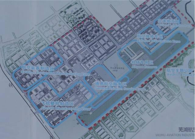 芜湖航空产业园位于芜宣机场旁,近期用地面积8.43平方公里,远期规划面积近30平方公里。规划机场专用区、空港物流园、飞机整机制造区、航空装备制造区、航空维修专区、通航运营服务区、航空主题公园等功能板块。