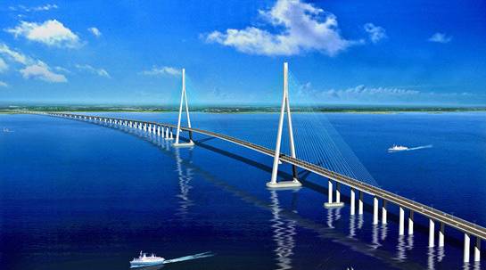 全桥混凝土总量55万吨,结构用钢11万吨,其工程总量及规模均超过了武汉和南京两座公路铁路两用桥的总和,该桥的科技含量、工程规模和建造质量,居国际一流,国内领先。