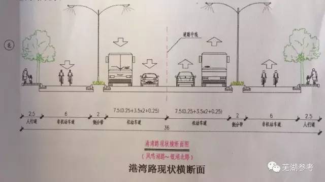 港湾路(珠江路~银湖北路)道路宽度36m,三块板,双向四车道。