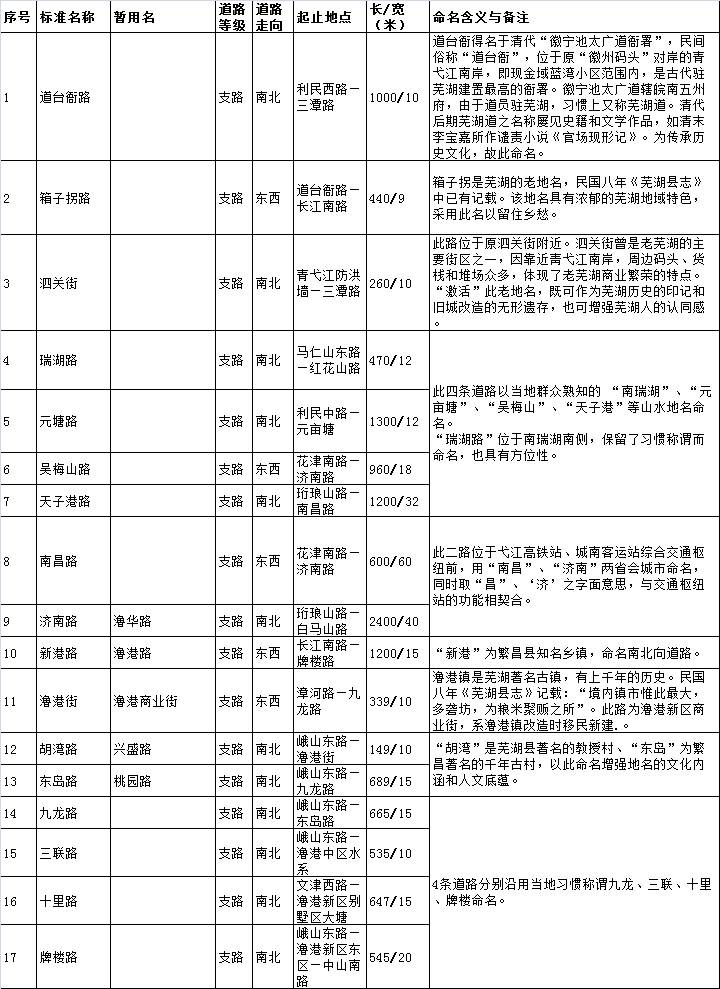 3、鸠江区新建道路命名方案(34条)