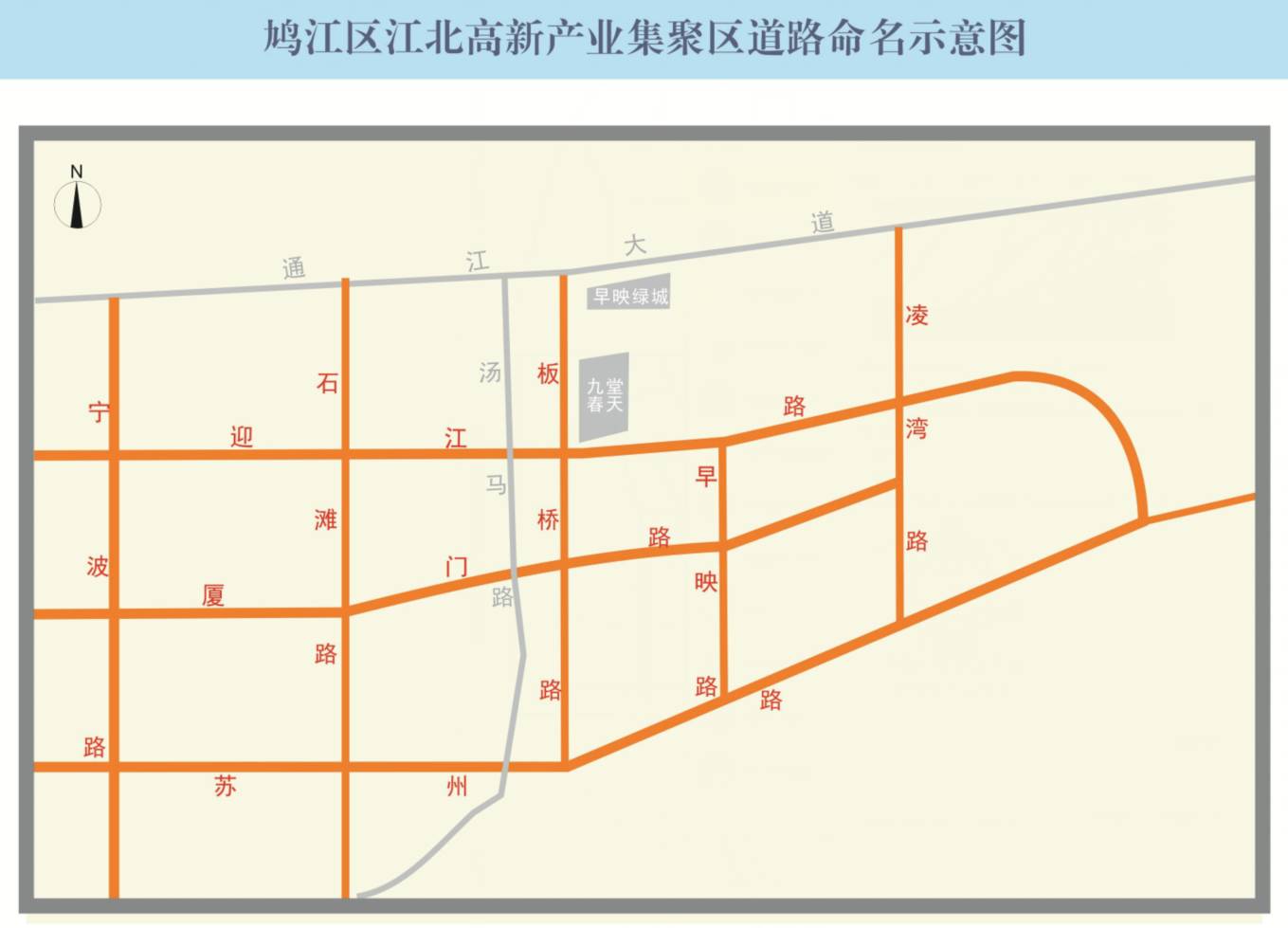 江北高新产业聚集区起步区新建道路命名方案(8条)