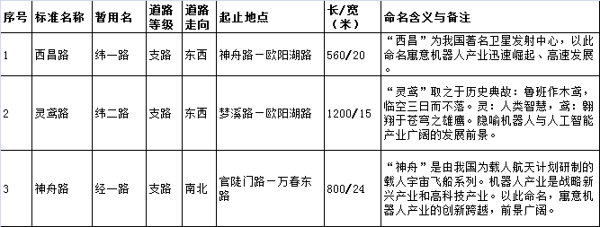 机器人产业园新建道路命名方案(3条)