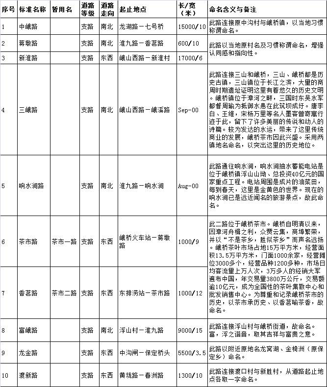 5、三山区新建道路命名方案(10条)