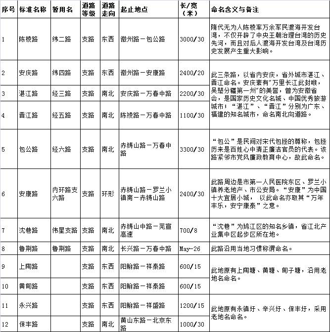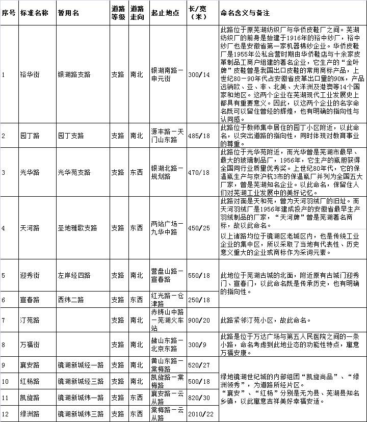 1、镜湖区新建道路命名方案(12条)