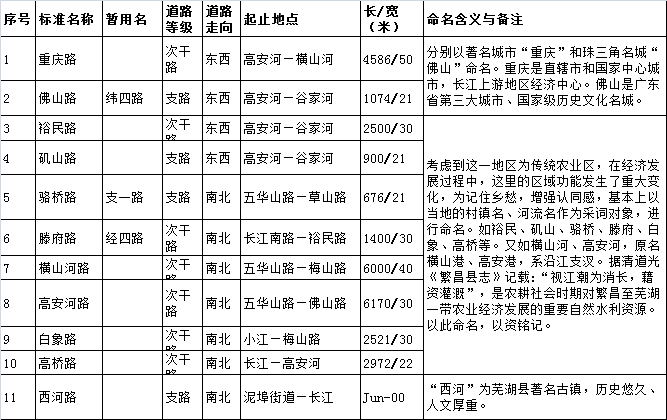 芜湖市区新建119条道路命名方案 看看有哪些