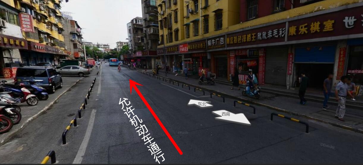 目前允许机动车通行方向为: