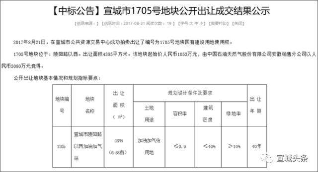 宣城1705号地块公开出让成交 A小来源:宣城头条2017-08-23 16:58:02 2017年8月21日,在宣城市公共资源交易中心成功拍卖出让了编号为1705号地块国有建设用地使用权。 1705号地块位于:陵阳路以西。出让面积4385平方米(6.58亩),土地用途为加油加气站用地。该地块起始价人民币1053万元,由中国石油天然气股份有限公司安徽销售分公司以人民币5080万元竞得。(折合约772万/亩,溢价率为382%) 项目位置示意图(仅供参考) ℃ QQ空间新浪微博腾讯微博豆瓣 巢湖居巢经济开发区面向社会招聘 六安家长没买房,孩子能在学区内上小学? 相关阅读 蚌埠就业失业登记证编号可以在皖事通上申请吗?编号要多久能出来? 在上海交的社保想转蚌埠,需要什么手续吗? 在上海工作的公积金可以在蚌埠办理公积金贷款吗? 蚌埠市老旧小区改造加装电梯,国家有没有补助? 蚌埠新生儿医保是怎么办理,需要哪些手续? 推荐图片 2021芜湖住房公积金缴存基数和比例调整!你的工资有变化吗? 芜湖公交卡将停止发行!不再充值!明年可用支付宝、微信 关于芜湖市三山区燃气用户户号变更的通知 芜湖市文化路要进行拓宽改建啦 最新评论