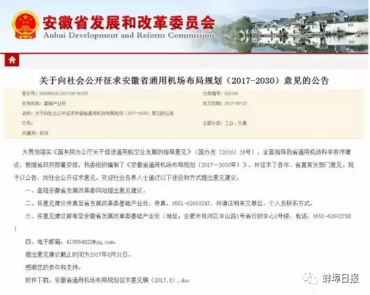 8月22日,《安徽省通用机场布局规划(2017-2030年)(讨论稿)》启动征求意见。描绘未来十几年安徽省通用机场建设“蓝图”。