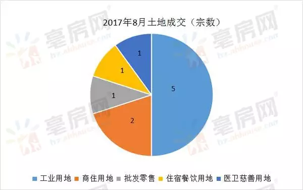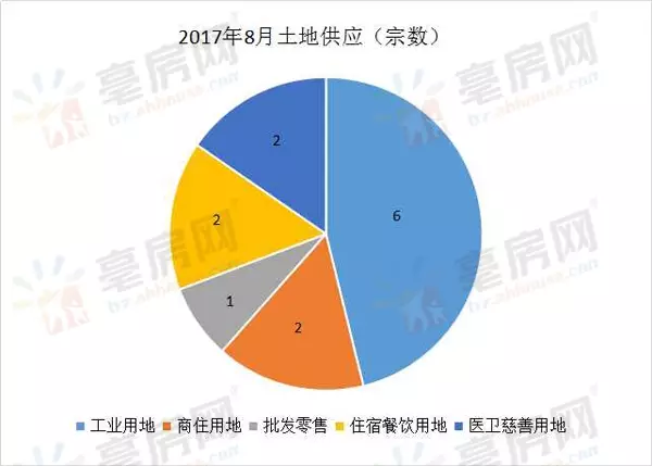 据星空地产研究院统计,8月份亳州市区土地共供应13宗,供应面积为539.9亩,其中包含工业用地6宗,共197.71亩;商住用地2宗,共77.53亩;住宿餐饮用地2宗,共59.48亩;医卫慈善用地2宗,一宗为社会福利用地49.66亩,一宗为医疗卫生用地79.29亩;批发零售用地1宗,共76.34亩。