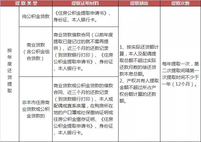 3、按年偿还住房贷款只能提取本人或配偶的住房公积金,不能提取父母或子女的住房公积金。