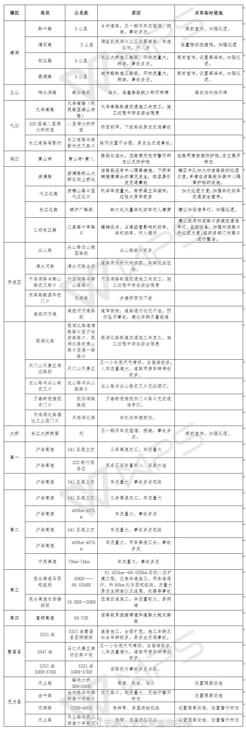 1、市区前往南京、马鞍山、宣城、铜陵等方向车辆,避免驶往芜宣高速收费站入口,尽量从芜湖东、芜湖南收费站上高速。