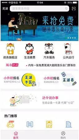 打开城市令,点击首页“芜湖县小升初报名入口”,进入报名页面。
