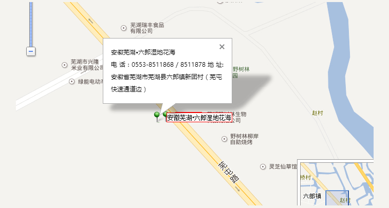 地址:芜湖市芜湖县六郎镇芜屯快速通道新福村加油站旁(六郎湿地花海景区前100米处)