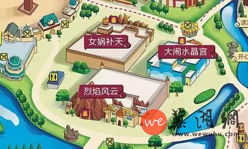 敦煌石窟艺术、伊斯兰圆顶建筑风格的火焰山,似烈焰熊熊,火舌撩天。 乘坐抓举式摇臂轨道车,模拟立体空间的各种飞行动作,与孙悟空一起乘筋斗云上下翻飞,穿梭四周墙面大小不一的小洞窟,观看皮影戏,一场妖魔传奇,天旋地转的奇幻冒险之旅正在进行。