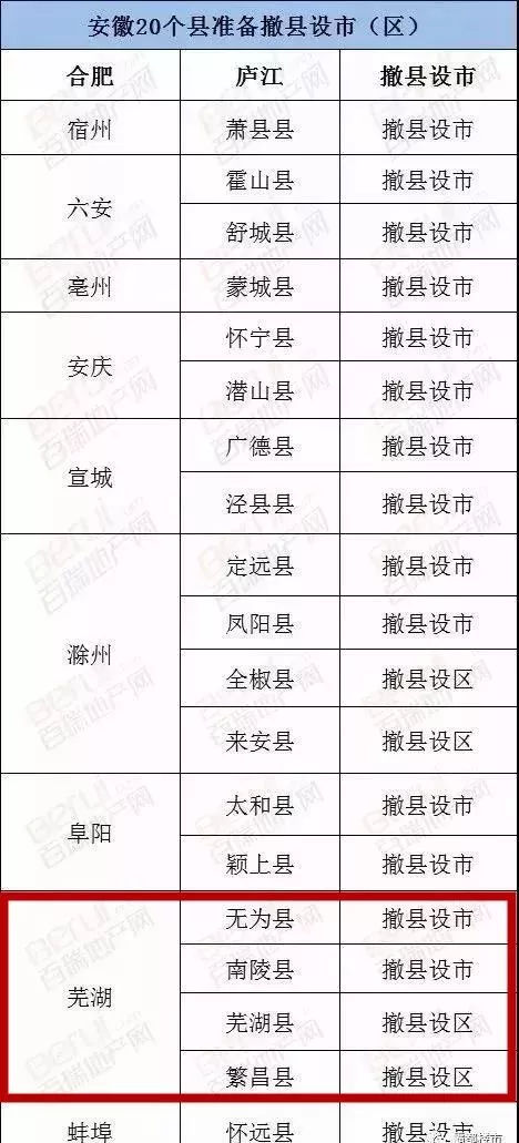 2018芜湖四县撤县立市全新动态曝光!安徽20个县将要崛起!