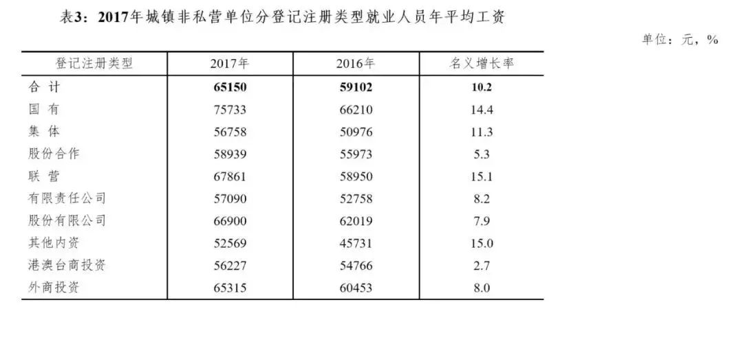 年平均工资最高的是国有单位75733元,是全省平均水平的1.16倍。年平均工资最低的是其他内资单位52569元,为全省平均水平的81%。