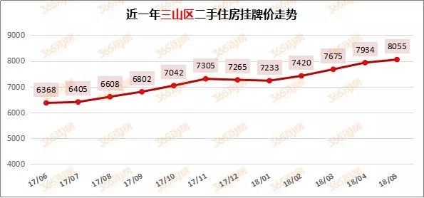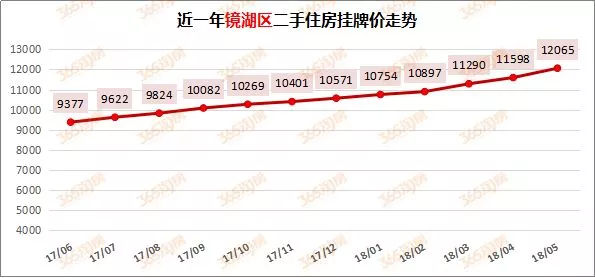 据365淘房二手房平台数据统计显示,2018年5月芜湖市二手住房挂牌价继续保持稳中有升的趋势,月度挂牌均价约11280元/㎡,环比上涨3.36%,同比上涨30.48%。