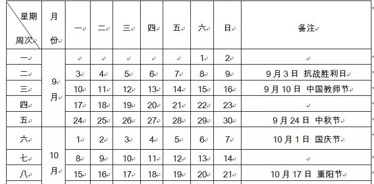 该信息来源于芜湖教育局去年公开的周次表