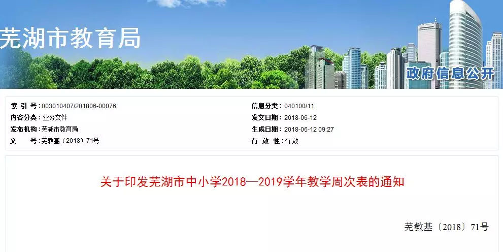 速看!芜湖教育局对外发布《芜湖市中小学2018—2019学年教学周次表》快来看看芜湖中小学放假时间和开学是怎样安排的