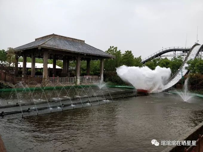 两个水项目,都需要买雨衣,友情提醒千万不要相信乐园门口卖雨衣的忽悠,进园在这两个项目口买雨衣就好,质量可以,5块钱。水上项目一定要把脸整个都包起来哦,不然水会顺着你的脖子倒灌进去,你的屁股就湿了,哈哈哈,来自小白的惨痛回忆。好了,我是个正经的公众号。仙岛探秘是大家坐在一个圆盘子里顺着河道一直流,中途多次被水溅。刺激指数:2.5颗星。飞跃河谷是坐在船里一直上坡,然后突然一个俯冲,水花四溅。别问我扑面而来什么感受,我没睁眼。刺激指数:3颗星。