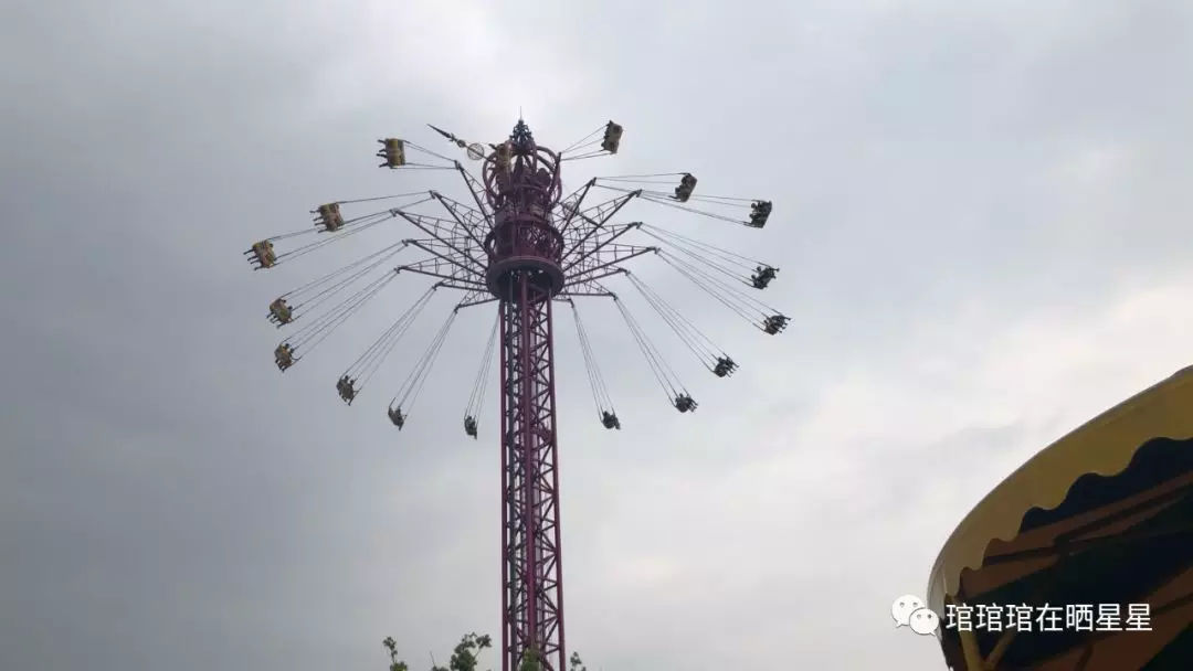 中途路过集中在一片类似这种只靠二三四根绳子吊着的项目,以及机械爪翻转大吊锤这类的危险项目,都果断放弃。刺激指数:4.5颗星。从过山车下来,还玩了情侣飞车(?好像是,原谅我光顾着玩儿没拍图还没找到网图)。就是在大转盘上坐着小转盘然后自转,整个人想吐。不推荐。刺激指数:3.5颗星。