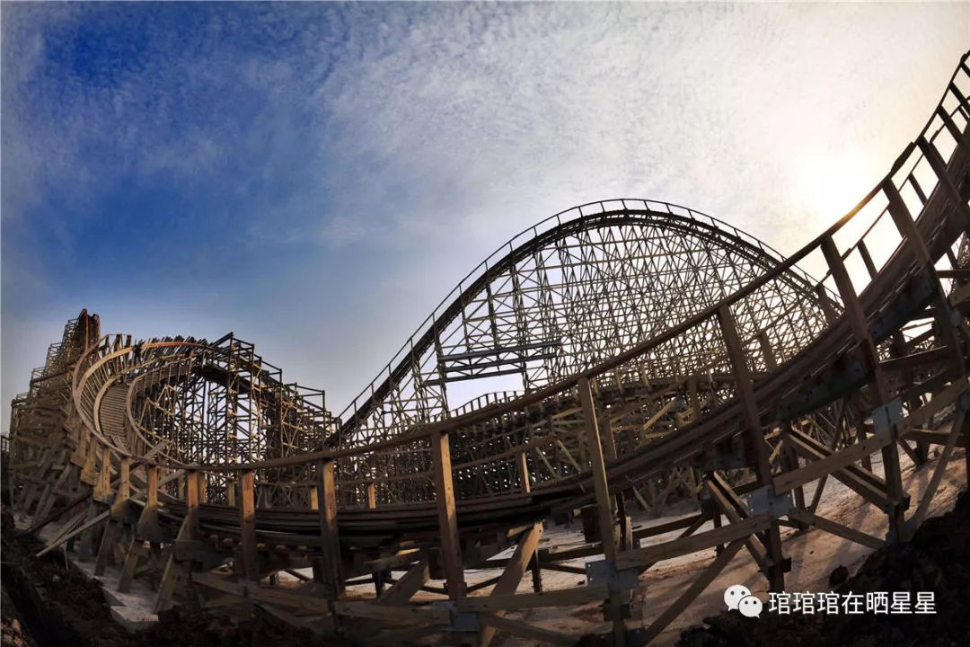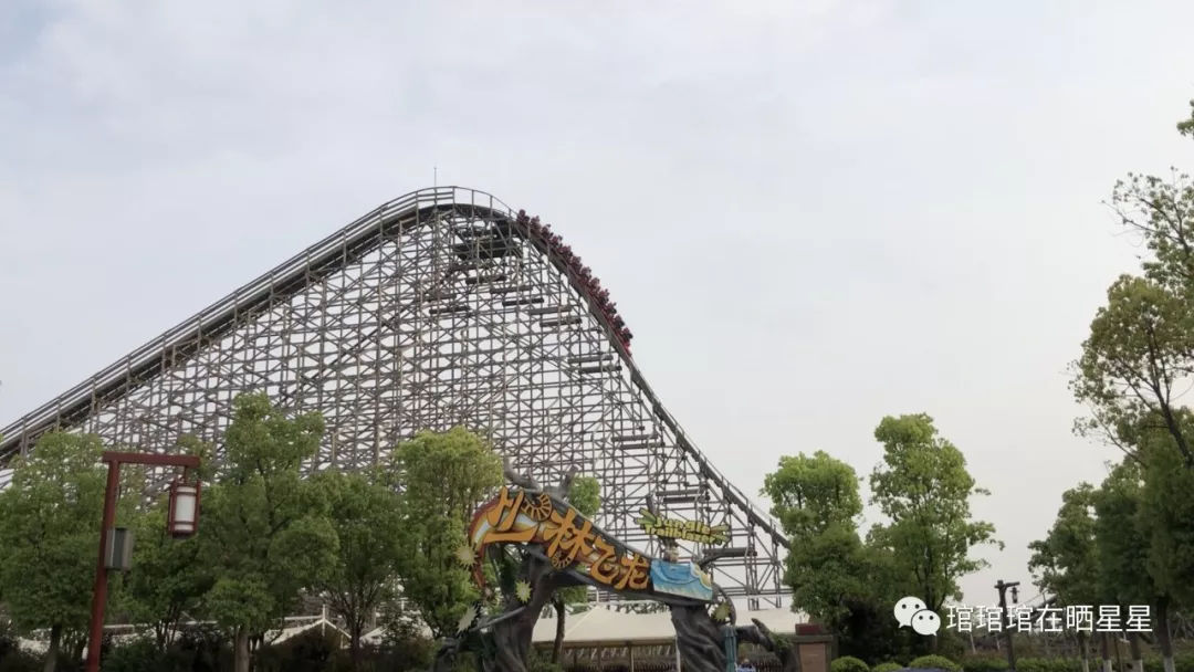 华东最大木质过山车。如果前面钢结构在抖的话,这个更抖。木质过山车吓人的地方大概就是如果有一颗螺丝钉凸了出来,车毁人亡,我不是故意吓你们的。丛林飞龙的规模目测比飞跃极限大0.5倍?有扭着和倒着的轨道。排队的人,嗯,不需要排队,连开一车的人都凑不齐,等了好一会儿开项目的服务小哥才把人骗齐了,迫不及待开了车。是不是游客们连看直哆嗦吓得不敢来。ε=(´ο`*)))我也是做了好久的心里建设,抱着这一秒是我以后人生最年轻的时刻的想法才在打退堂鼓的时候被小白成功拦截,逼上了梁山。防护措施说实话,只在腰部加了横档和扣,脖颈以上头部完全暴露,非常没有安全感。项目结束后,人稍微有点儿软,头部不能晃动,否则感觉脑子里全都是水在到处流。奇妙又不舒服的勇敢体验。爱上过山车的同时暗暗发誓,从此还是不要挑战园区最强过山车了吧,大家都不敢来是有道理的。刺激程度:5颗星+