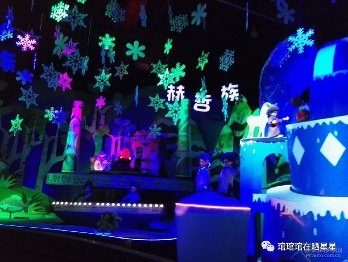从丛林飞龙上下来,可以去缤纷华夏体验水上“鬼屋”漂流。其实是一个亲子教育的乐园,里面有一条水道,家长和孩子坐在船里沿着水道缓缓前进,岸两边都是各个民族的服装民俗展示。你以为很温馨嘛!错了!展示的模特都是眼睛圆圆的塑料木偶娃娃,有的娃娃只动胳膊,有的娃娃只动眼睛,还有的娃娃眼睛一睁一闭一睁一闭。如果不是欢快的背景音乐,配上红绿霓虹光线的他们略恐怖。刺激程度:0.5颗星